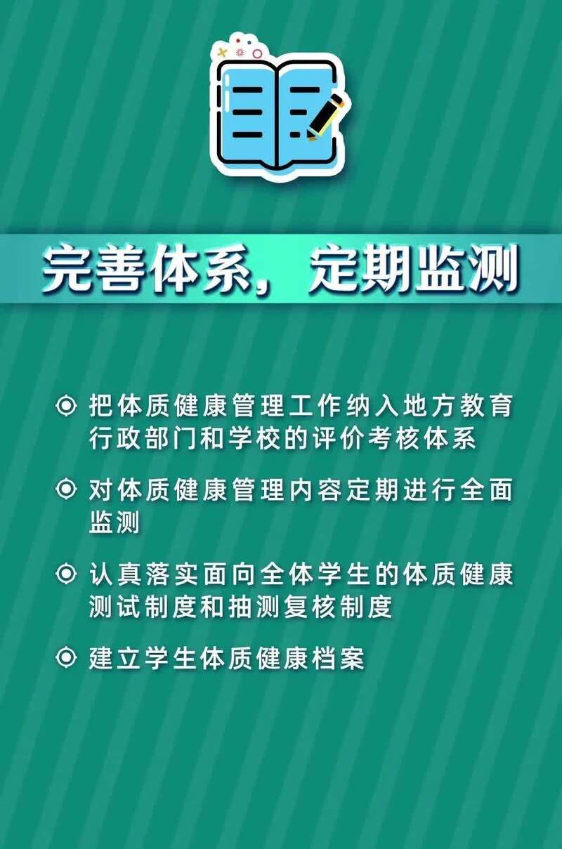 “近日教育部召开新闻通气会,介绍《关于进一步加强中小学生体质健康管理工作的通知》,为了增强中小学生体质健康,教育部这样要求,一起来看大图:”