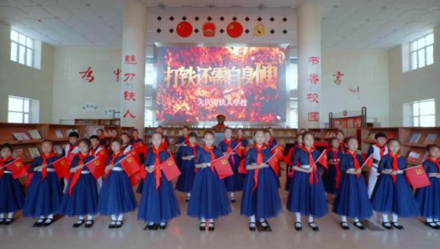 作为铁人王进喜亲手创办的大庆油田第一所学校,铁人学校从1960年建校至今,始终秉承以大庆精神办学、以铁人精神育人的优良传统,巍然屹立在铁人奋斗的沃土上。自2016年迁入创业城新校址后,依托周边老会战居住区为地缘优势,借助老会战的石油人、铁人的战友和同事的言传身教,每学期的“五老讲党课“,让师生时常接受铁人事迹的感染和洗礼,铁人学校亦将传承和弘扬铁人精神视为自己的神圣使命。