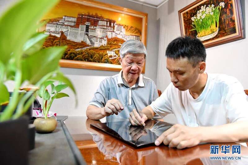 7月23日,中国工艺美术大师、国家级非物质文化遗产项目福州脱胎漆器髹饰技艺的代表性传承人郑修钤(左)在教授学生漆艺针刻技法。