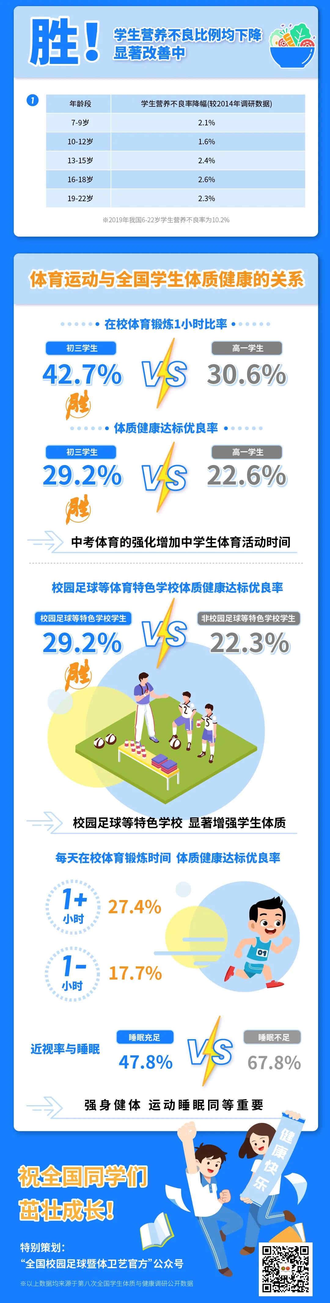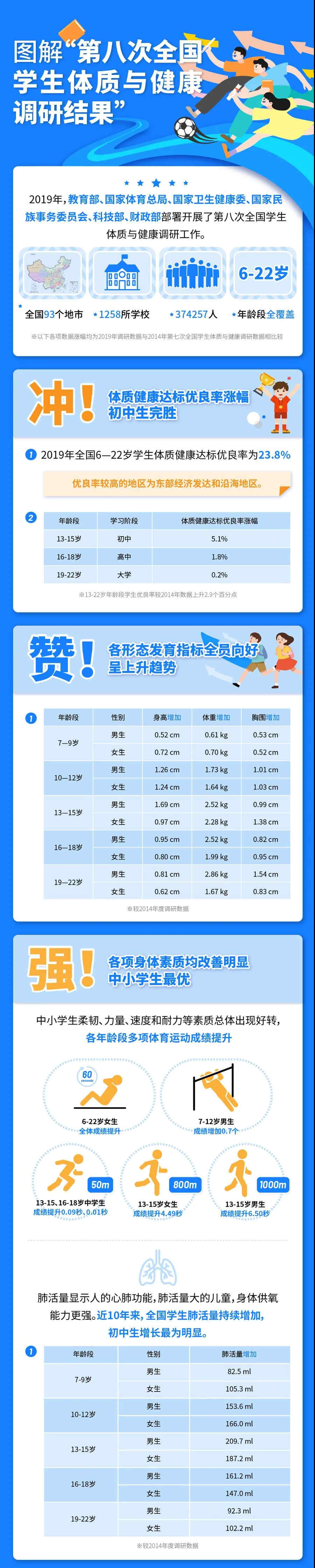 近日,教育部发布第八次全国学生体质与健康调研结果,与2014年相比,学生体质健康有何变化?哪个阶段的学生体质最棒?体育运动如何影响体质健康?这些大家最关心的问题,带你一图看懂↓↓↓
