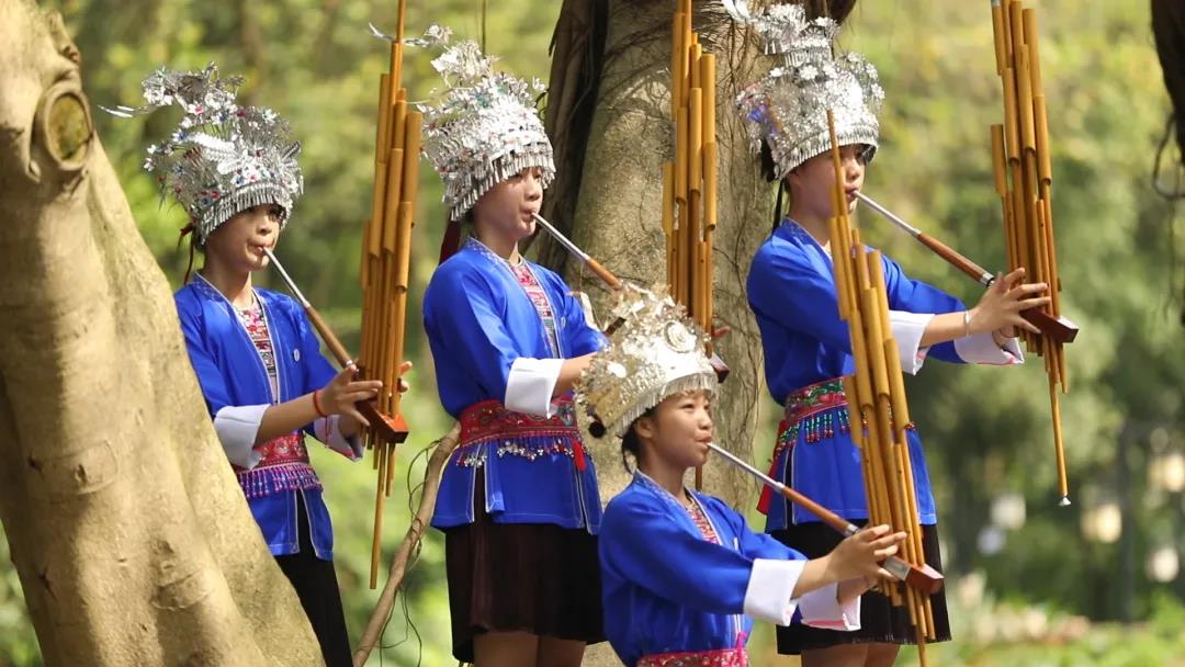 “芦笙一响,心里发痒”是融在芦笙曲里的民族记忆。中秋节之际上演的《笙歌鼎沸》,是柳州市民族高中的师生们自编自导自演的芦笙舞。他们以此来庆祝中秋,表达师生们爱党、爱国之情。