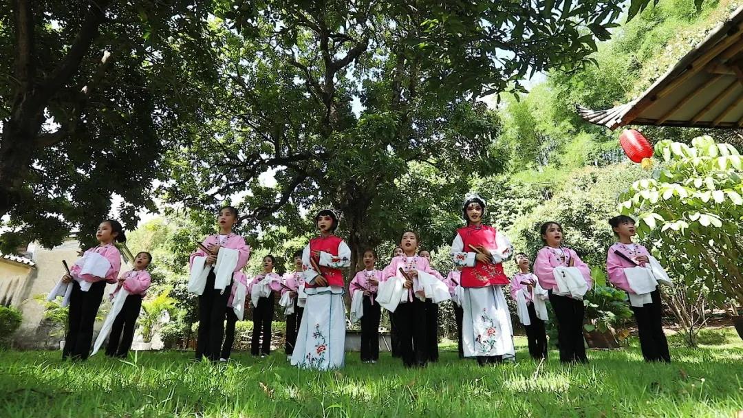 深圳市龙华实验学校创建于2016年,是一所全面现代化的学校。学校的戏曲社自学校创办之初便诞生了。而且今年的中秋节就是戏曲社的六岁生日。为了能够在中秋节这天给同学们呈现一场精彩的演出,孩子们正在戏曲社紧张的排练。她们今天所排练的内容是传统京剧曲目《桃花村》。孩子们就在这一颦一笑,一板一眼之间努力认真的练习。