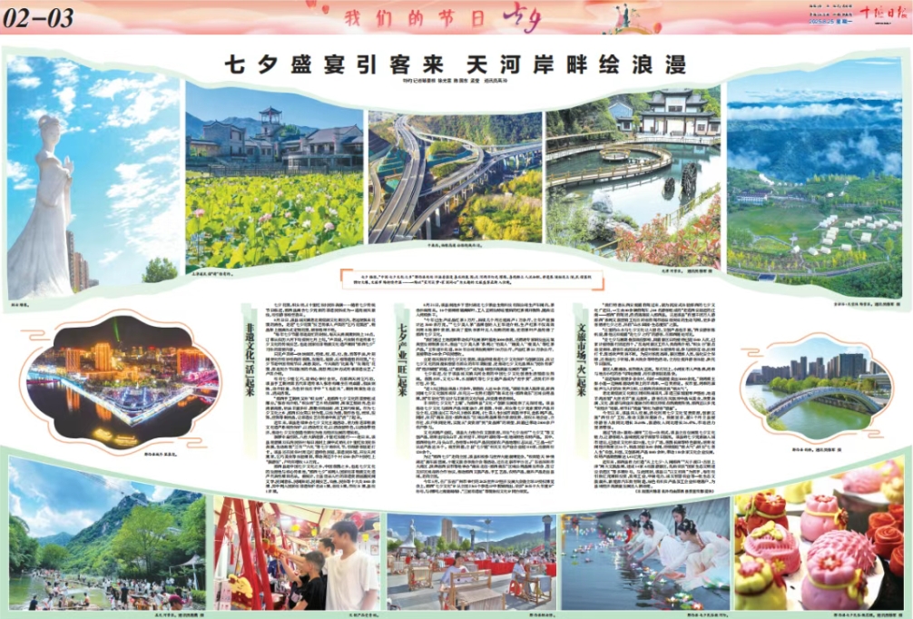 通过“活动+景观+演绎”三位一体模式,郧西县全方位展现七夕文化魅力,让游客踏入县域便沉浸于浓郁节日氛围。郧西县将七夕元素融入城市建设,已建成文化桥梁29座、七夕广场、喜鹊长廊等特色景观;培育夜间经济集聚区16个、精品民宿2600余间,持续催旺“烟火气”;研发“七喜人生”农创、科创、文创系列产品1000余种,带动110余家文化企业发展,农特产品销售额达1.45亿元。
