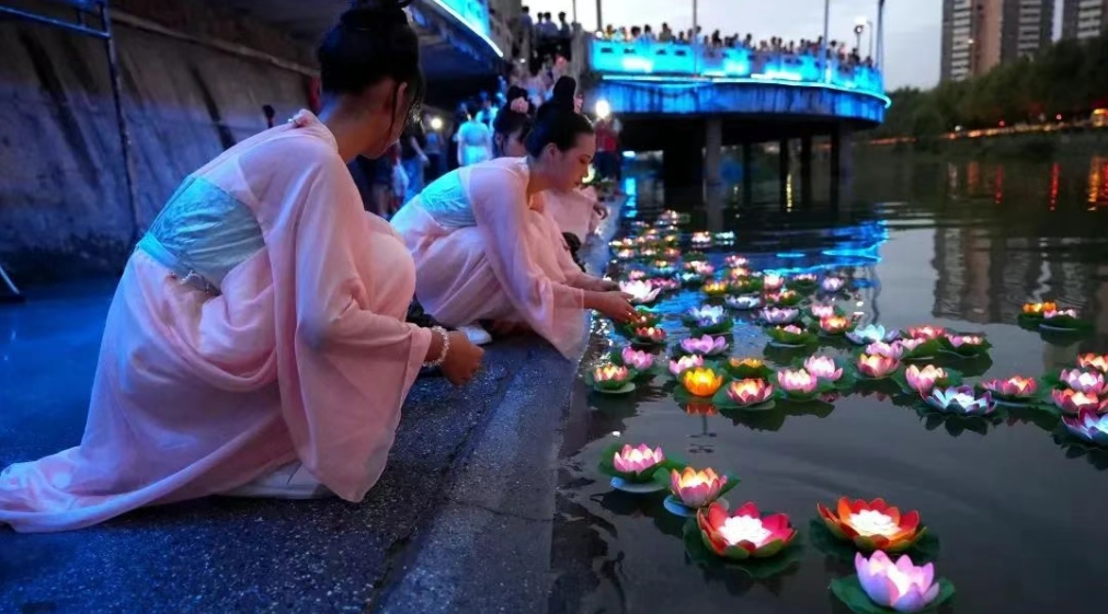 放河灯:河面跳动的星河碎片