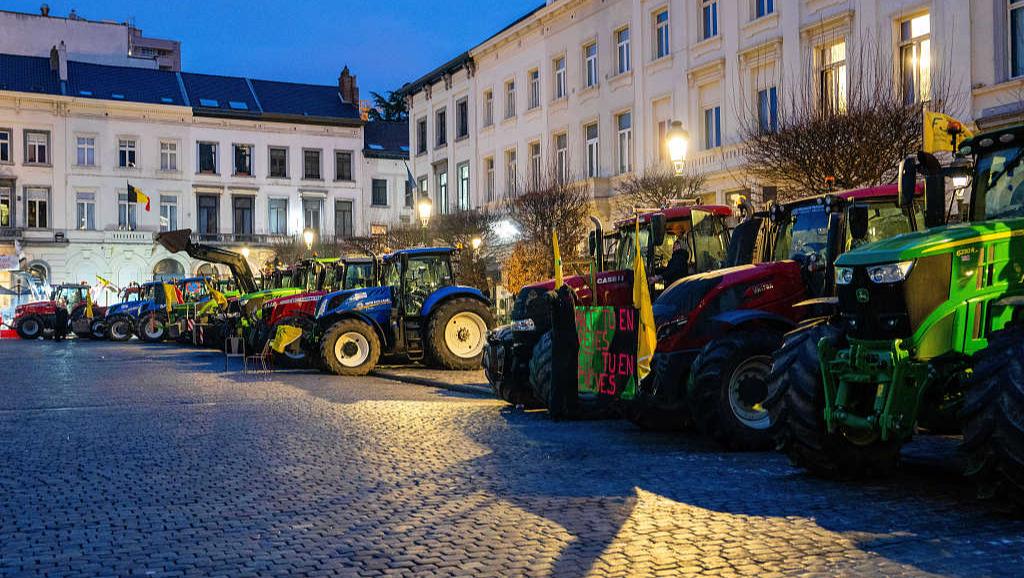 欧盟峰会期间 比利时农民驾驶拖拉机进行抗议