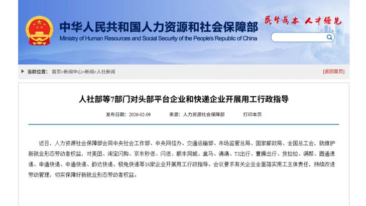 人社部等7部门对头部平台企业和快递企业开展用工行政指导