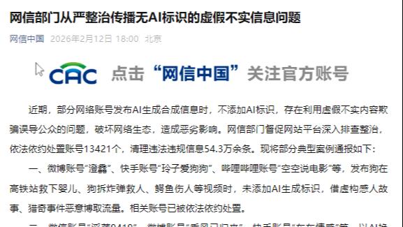 网信部门从严整治传播无AI标识的虚假不实信息问题
