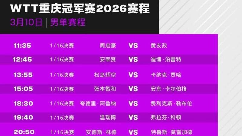 明日开赛!WTT重庆冠军赛首轮日程出炉
