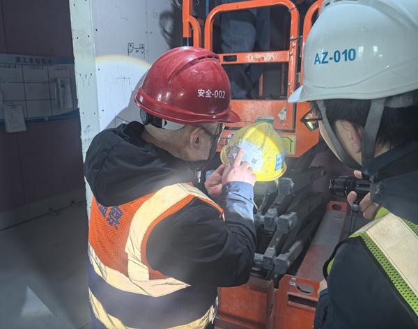 每天清晨,天刚蒙蒙亮,史云祥就带着安全团队开始全域无死角巡检,从设备层的线路排布到井道的防护措施,从施工机具的安全状态到工人的操作规范,每一个细节都逃不过他的眼睛。哪个桥架的固定螺丝松了半圈,哪个作业面的警示标识摆偏了位置,哪个工人的防护手套磨破了边,他都一一指出,记在本子上,盯着整改到位才肯离开。巡检的路,每天走下来少说也有几万步,工地上的每一个角落,每一条通道,他都熟得像自己家的院子。