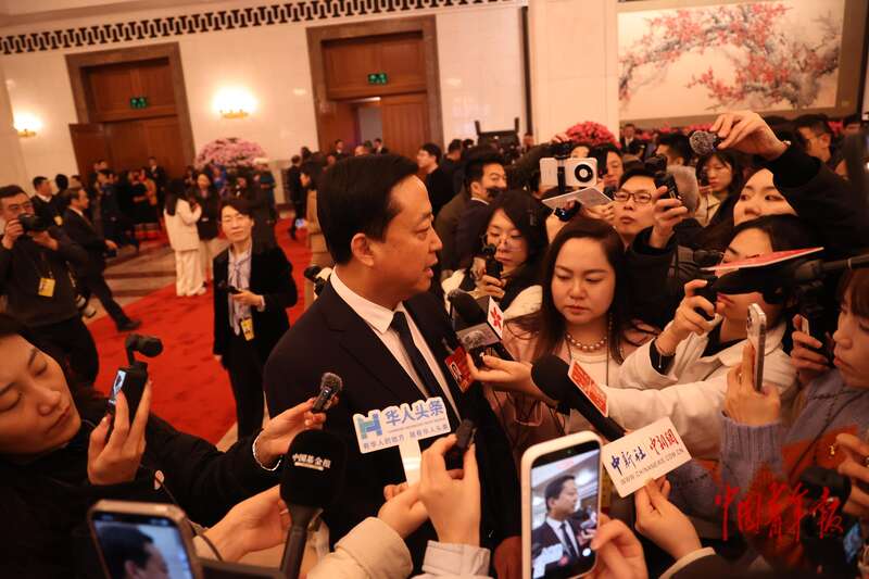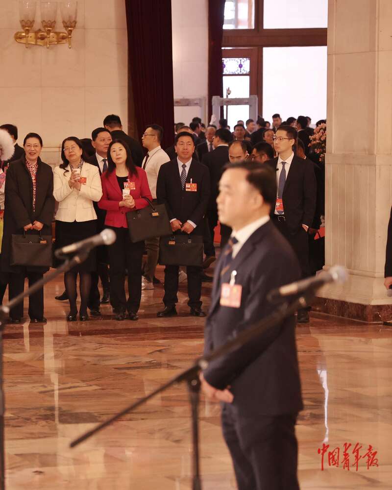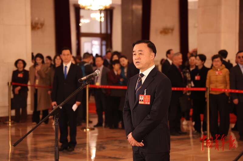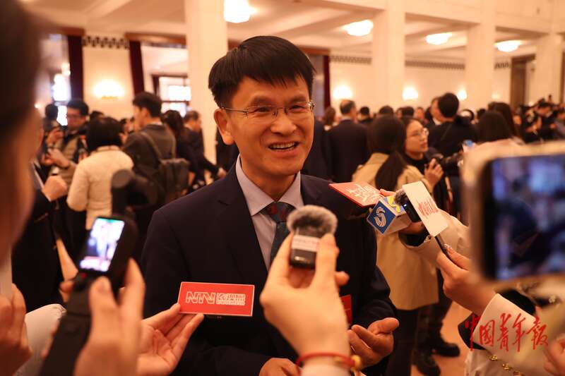 3月9日上午,十四届全国人大四次会议第二场“代表通道”集中采访活动在人民大会堂举行。全国人大代表、广东邦普循环科技有限公司董事长李长东回答记者提问。中青报·中青网记者 王鑫昕/摄