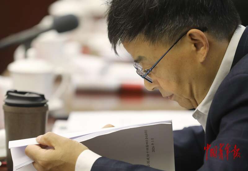 3月10日,北京会议中心,全国政协十四届四次会议民进界别小组会,全国政协委员马余强在翻看会议材料。中青报·中青网记者 陈剑/摄