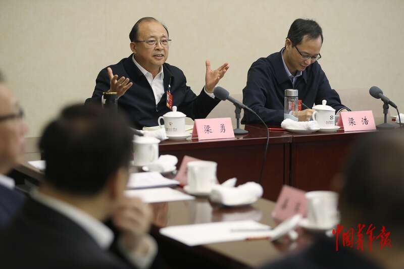 3月10日,北京会议中心,全国政协十四届四次会议民进界别小组会,全国政协委员、甘肃省政协副主席尚勋武(中)发言。中青报·中青网记者 陈剑/摄