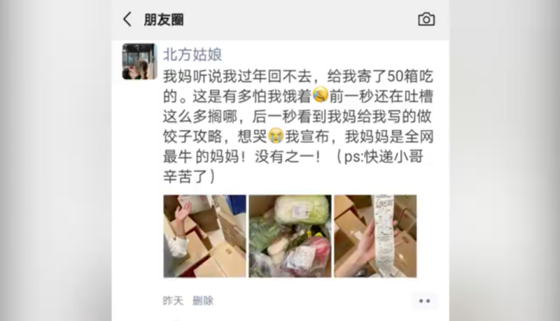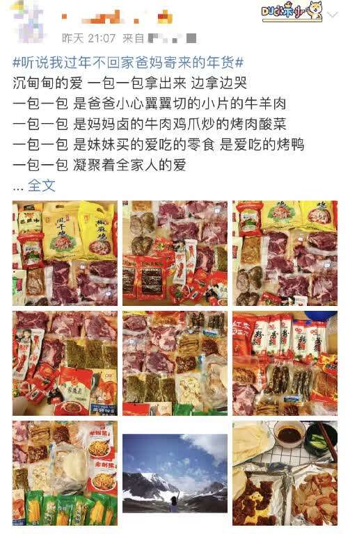 晒出了家人“千里寄年货”的照片
