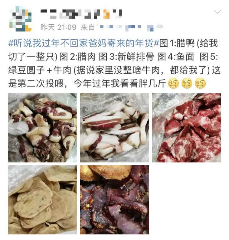 “听说我过年不回家爸妈寄来的年货”