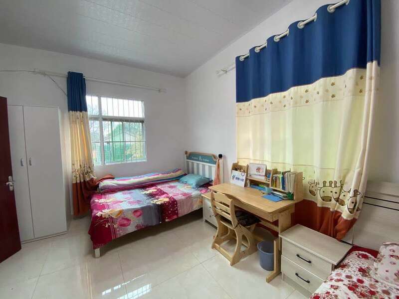 经过半个月装修,阳阳房间焕然一新。工作人员们还专门为他精心挑选了书桌、台灯、条纹装饰的窗帘等生活、学习用品。