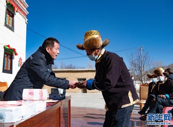 2月的西藏山南,微风习习、艳阳高照。在西藏民主改革第一村——山南市乃东区克松社区,农民戴着藏帽、穿着整洁,依次领取崭新的百元钞票,为即将到来的藏历新年增添了喜庆的气氛。