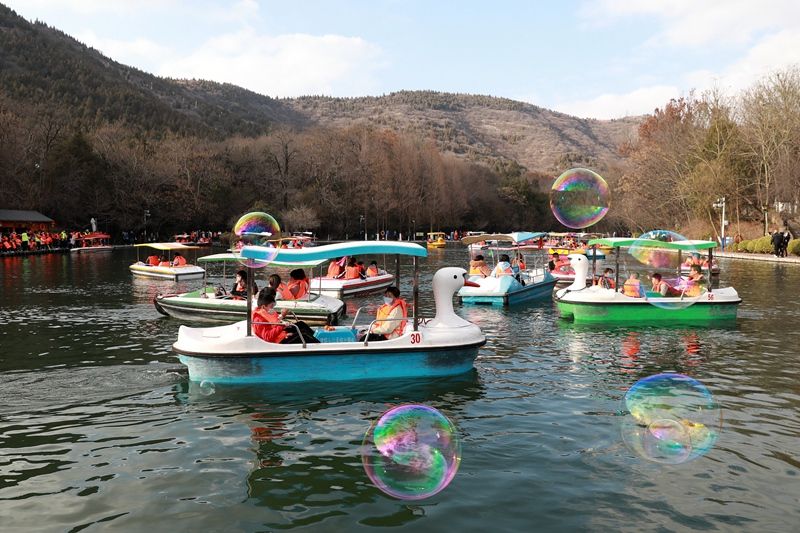 20212月1年2日,市民在相山公园人工湖泛舟游玩。