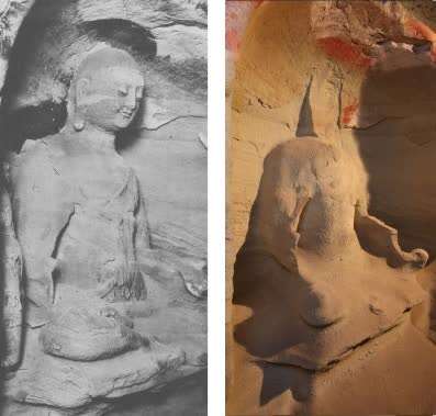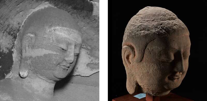 经实物鉴定、科技检测并与历史照片比对,专家一致认为,该佛首源自天龙山第8窟北壁佛龛内佛像,应为1924年前后被盗。