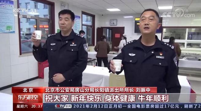 北京市公安局房山分局长阳镇派出所所长 刘振中:借此之机我和政委祝大家,新年快乐、身体健康、牛年顺利!干杯!