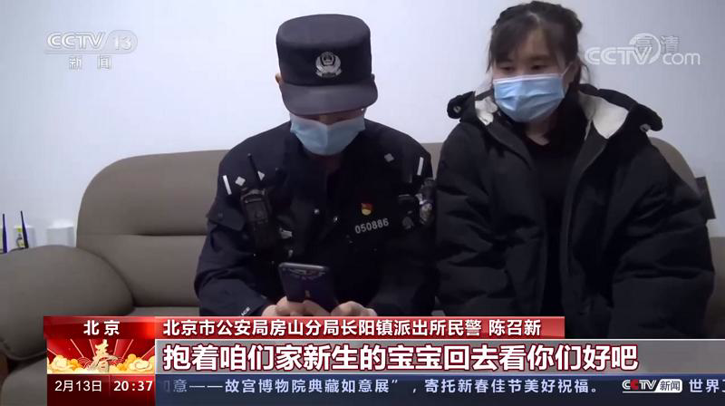 北京市公安局房山分局长阳镇派民警 陈召新:明年过年希望我们能回去,抱着咱们家新生的宝宝回去看你们。
