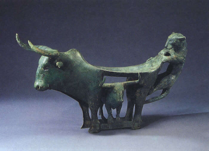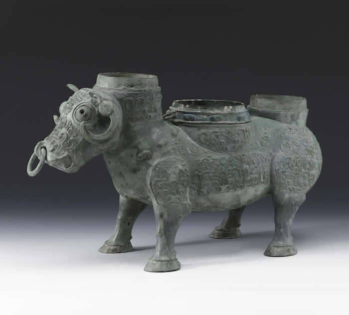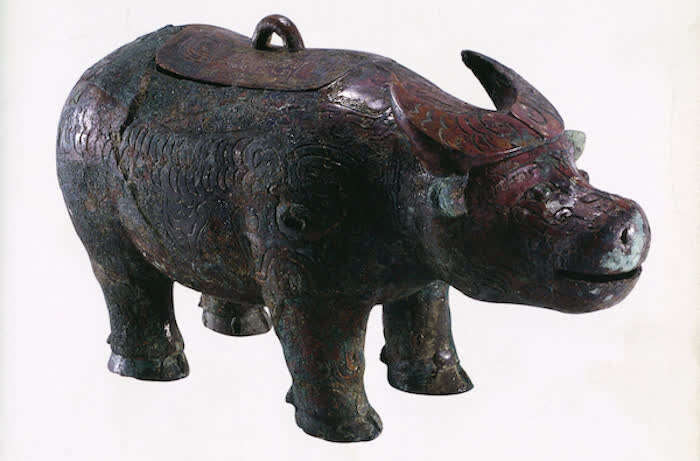 2021年是辛丑牛年。牛在中国传统文化中象征勤奋坚韧、温和忠厚。牛还是财富的象征,祭祀的供品、氏族的图腾……从中国墓葬出土的青铜器可知,牛的纹饰或造型很早就出现在中国先秦时期的青铜器上。比如安阳殷墟出土的青铜鼎、江西新干大洋洲出土的青铜镈在其显著部位都绘有牛首兽面纹;商代的酒礼器特别发达,墓葬中还出土过直接以牛为造型的酒器牛形尊与牛形觥等,比如上海博物馆藏凤纹牺觥……本文以中国墓葬出土的青铜器为例,漫谈中国古代牛形青铜器。
