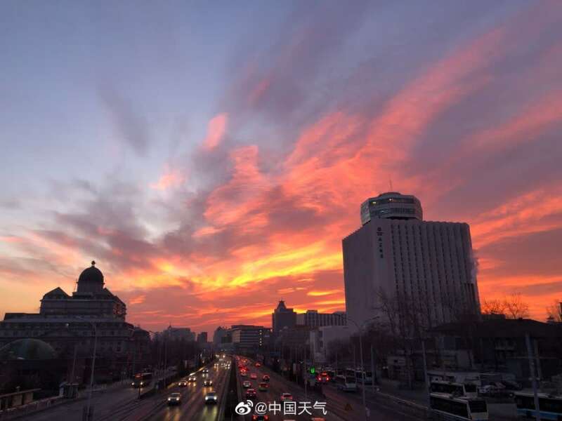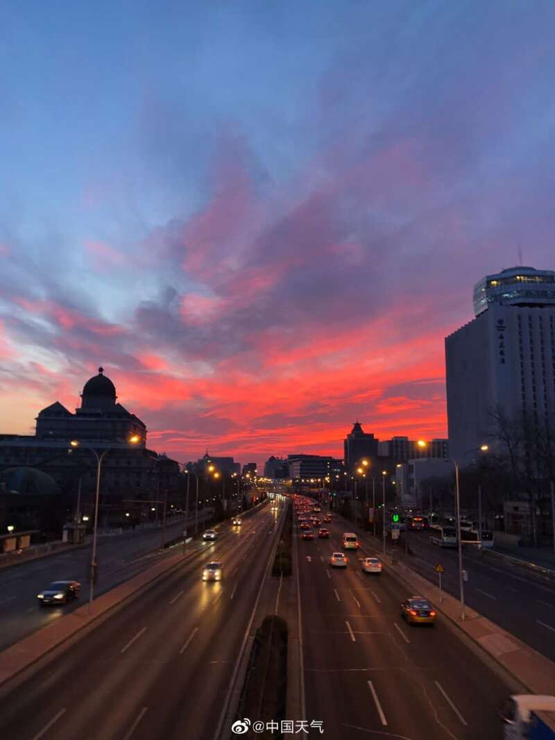 超惊艳!北京今晨现橙红色朝霞