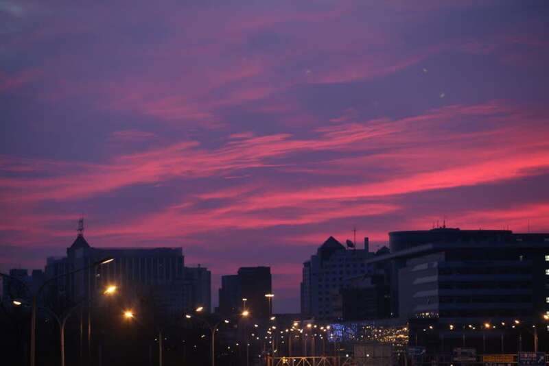 19日早晨,北京天空出现大片粉色朝霞,映出半边橙红天空!让这超惊艳朝霞开启你元气满满的一天,你有拍到吗?