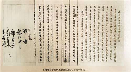 《政府与中共代表会谈纪要》(即双十协定)复印件。经济日报-中国经济网记者 吴陆牧摄