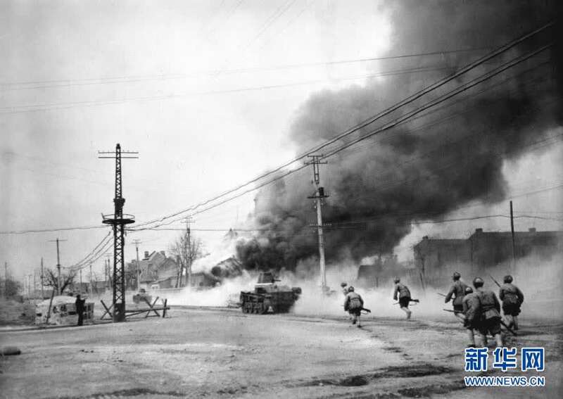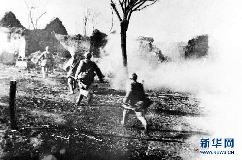 这是在淮海战役中,人民解放军突破浓烟密火,扑向国民党军的指挥所鲁楼(资料照片)。新华社发