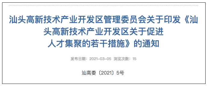 近日,广东汕头市出台《汕头高新技术产业开发区关于促进人才集聚的若干措施》,引发热议。