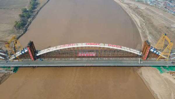 本次拱肋整体提升、合龙一次性创下了四项“第一”:桥梁工程三段法作业中提升重量世界第一,其整体提升重量6800吨,大约相当于220架波音737飞机的重量;在黄河上首次采用提升合龙技术;世界桥梁中首次采用不单独设置合龙段进行拱肋提升合龙作业;世界上最大下承式网状系杆拱桥主跨合龙完成,是名副其实的“黄河第一拱、世界第一吊”。