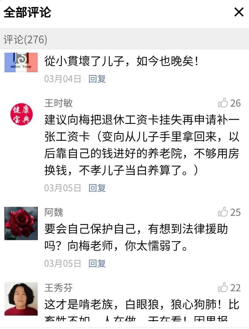 向梅通过儿子实名举报了这些不实信息,但并未得到回应。儿子和朋友在文章下留言澄清,很快也被删除。“用我们的真名真姓和照片,必须有事实为依据。平台对自媒体缺乏监管,让这些谣言四处泛滥,给社会造成恶劣影响,也让我们这些辛苦了一辈子的老演员感到寒心。”