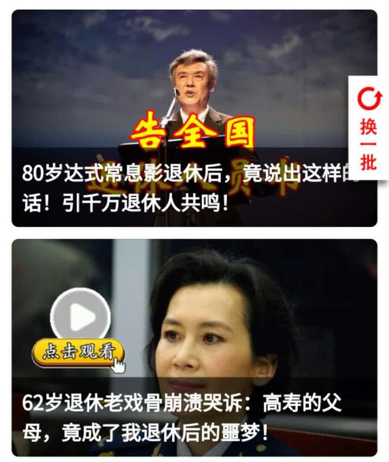 记者发现,这一类批量生产的“谣言”,都有统一的格式。先是拿老艺术家的从影经历、剧照打情怀牌,再引出退休、晚年生活的介绍。许多篇文章中,这些介绍还被冠以老艺术家“自述”的名头。翻看文章内容,“谣言”的内容大同小异,几乎都在渲染子女不孝顺、无人养老等悲惨的退休生活。
