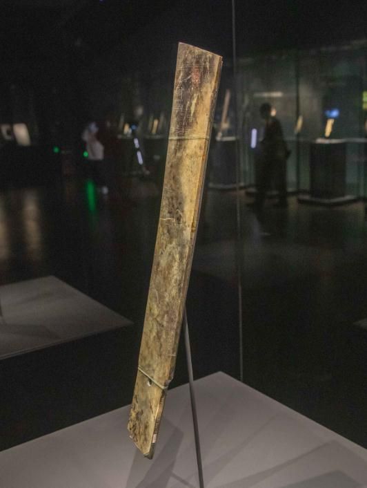 玉璋是祭山的一种礼器,图案包含了人、山、云,专家认为璋上的图案是古人站在山上祭祀山神的场景。
