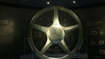 这个形似方向盘的青铜器物,是太阳的标志,名为太阳轮,是古蜀人太阳崇拜的写照,其五等分也表明古蜀人已有高超的数学思想。