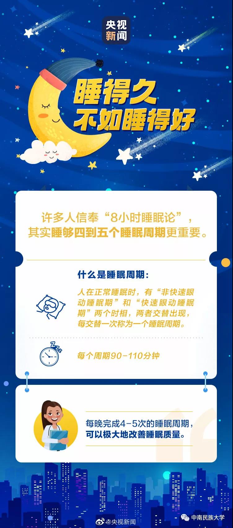 医学研究表明,偶尔失眠会造成第二天疲倦和动作不协调,长期失眠则会带来注意力不能集中、记忆出现障碍和工作力不从心等后果。作为大学生,应重视睡眠问题,养成良好的生活习惯,关于睡眠问题,校医院也为大家提供了几个小妙招: