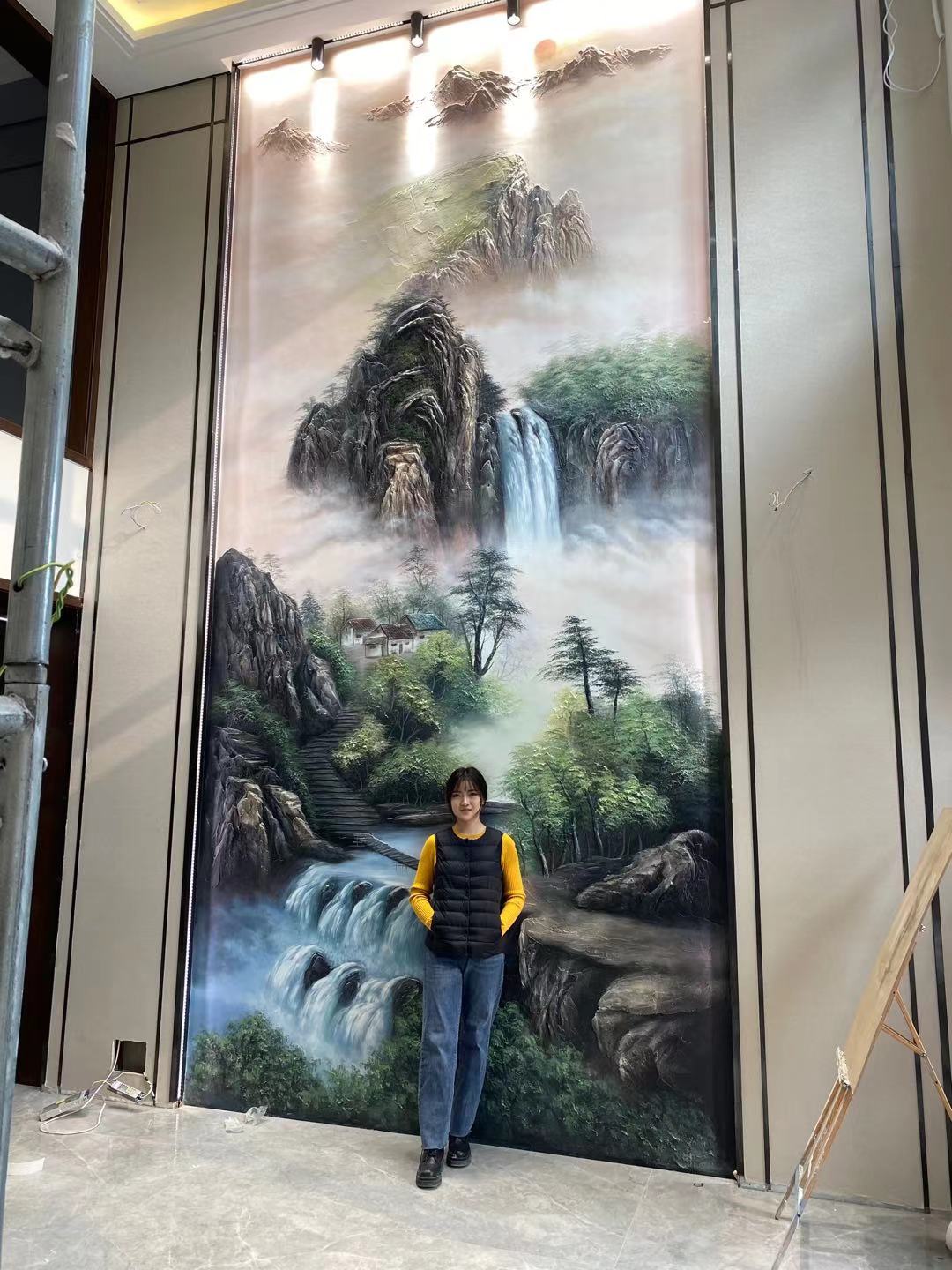 “我们大学的时候接到过一个硅藻泥开业的单子,要求我们直接上手做浮雕壁画,当时懵了,感觉好难,但我们三个同学还是一起做出来了,效果还挺好。之前大家画的壁画都是平面的,而当时我猜测,凹凸不平的浮雕壁画以后应该会有市场,也许会成为一种流行。”