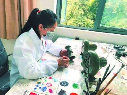 谢丽在修复文物 新民晚报记者 孙中钦 摄