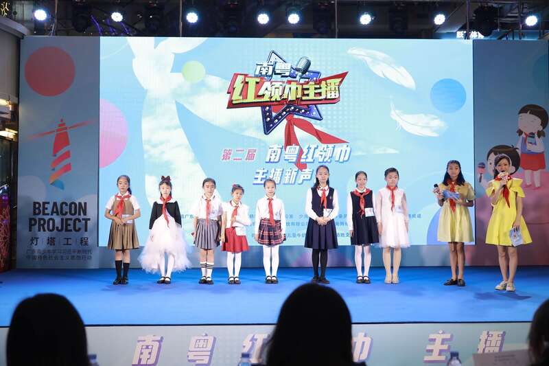 第二届“南粤红领巾 主播新声音”活动于2020年12月启动,吸引广东省30万少先队员报名参加,经过“我的2035——30秒心里话”音频展示、“红领巾广播站”主播稿撰写、“红领巾广播站”视频播报三轮活动,进入今天的现场展示阶段,最终将挑选出40名小主播参加总决赛颁奖礼。