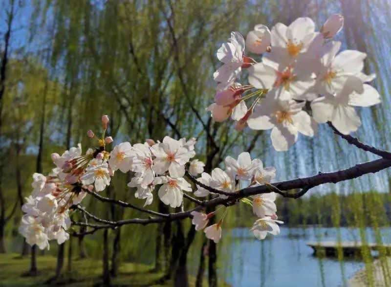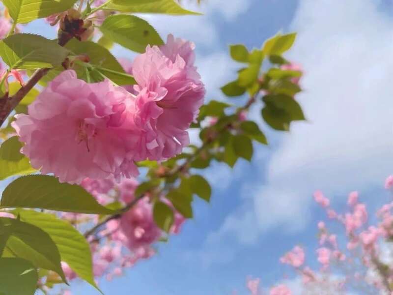 校园的晚樱同样值得期待,