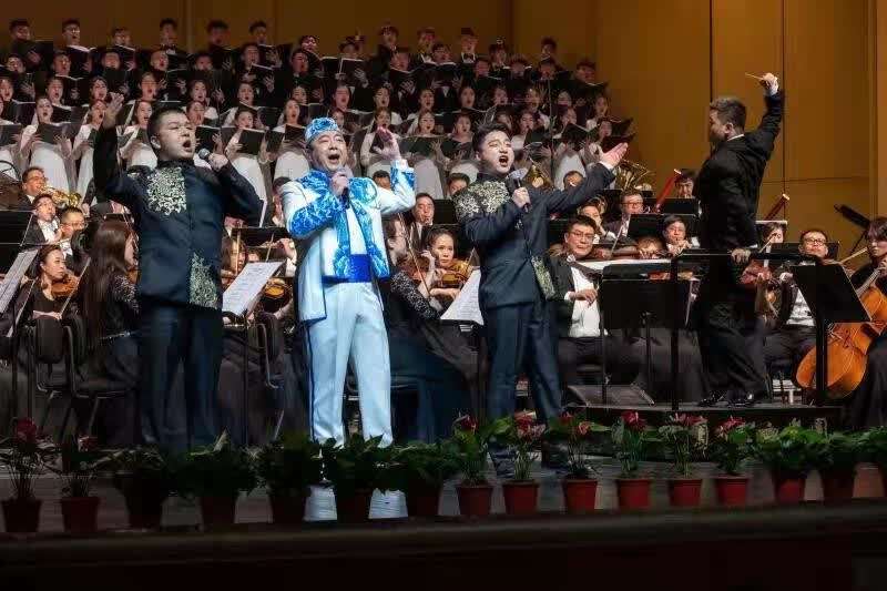 27日晚,演出季启动音乐会分为上下半场,以交响乐、独唱、大合唱、男女声二重唱等多种形式,诠释经典红色旋律,奏响爱国情怀,唱响时代号角。音乐会还特邀著名青年指挥家金刚执棒,并邀请著名男高音歌唱家李爽、女高音歌唱家杨琪联袂兰州交响乐团、兰州音乐厅合唱团、西北师范大学音乐学院合唱团,共同带来了一场精彩绝伦的“红色”交响盛宴。