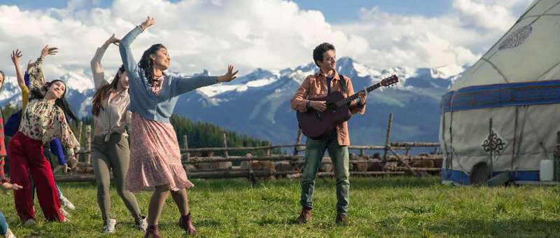 在叙事方面,如何在歌舞的串联中保持一个完整的叙事链条和艺术逻辑,对创作者来说是一个巨大的挑战。高黄刚介绍,《歌声的翅膀》构建起了“形散而神不散”的叙事链条,使全片既可进行自由地闪转腾挪,让“歌声的翅膀”可以自由“飞翔”,又保持了清晰的叙事线,让“歌声的翅膀”保持着可见可感的“飞翔”轨迹。“跟随影片的节奏,观众最终抵达的不仅是艺术的彼岸,还有精神的高地。”高黄刚介绍,这部影片在创作中,我们设计了在两个时空中来回穿插的叙事结构线——一个讲述的是江寒等三个年轻人在现实中对艺术理想的追寻,另一个讲述的是江寒的老师及其爱人在岁月的长河中守边戍边的无私奉献。这两条线索交叉,最终在影片结尾中,两条线交汇——既阐明“老师”那一辈人的奉献和对主人公的熏陶,为江寒他们攀登文艺高峰打下了坚实基础,又通过江寒等人将艺术之根扎在了新疆大地来表现守边戍边、无私奉献的精神在当下的美好传承。最终两代人一起站在了慕士塔格冰峰前,共同放飞着他们心中的歌。“雄浑的慕士塔格冰峰不仅是一座地理意义上的高峰,更寓意着两代人一直在攀登的艺术高峰。”