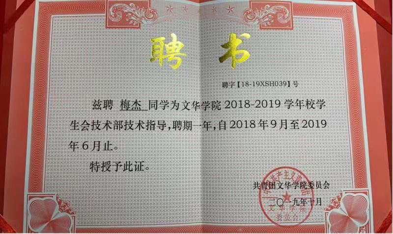 在大二梅杰留部并竞选上副部长,他提到“细心是所有部长应该具有的品质”,他不仅用自身行动践行了这句话,还将这种品质传递给了自己的部委。“有学长在就很放心。”梅杰手下的部委这样给予评价。