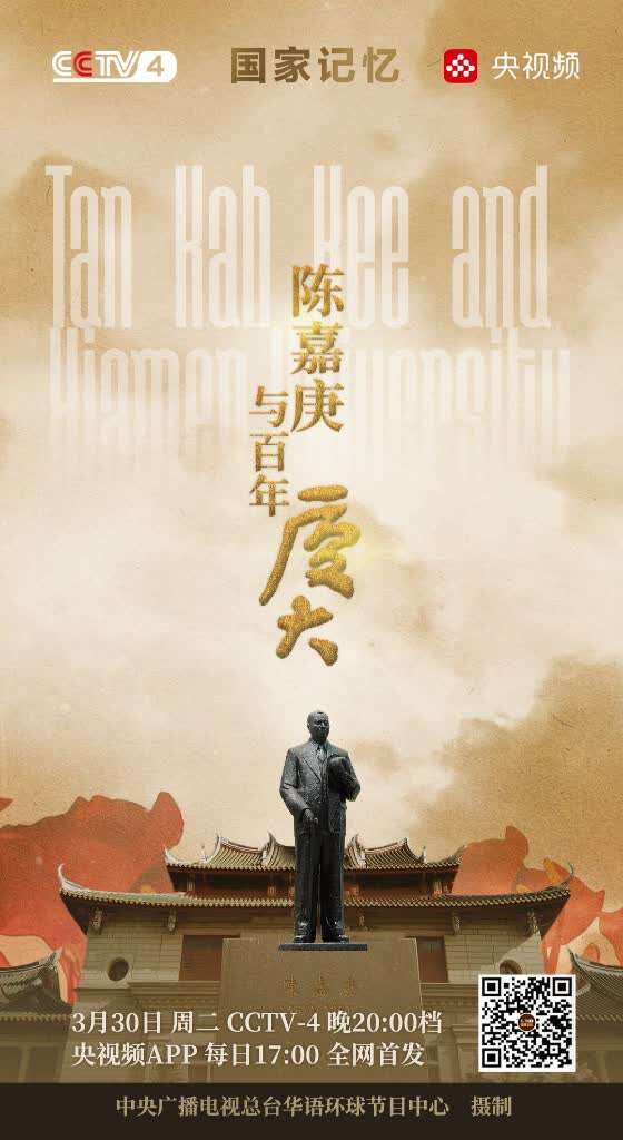 中国青年报客户端讯(中青报•中青网记者吴晓东)厦门大学建校100周年之际,中央广播电视总台CCTV-4《国家记忆》栏目于3月30日起推出三集纪录片《陈嘉庚与百年厦大》,用影像为观众展现和解读厦门大学具有的永恒魅力,让受众感受这所学校薪火相传、生生不息的精神和力量。
