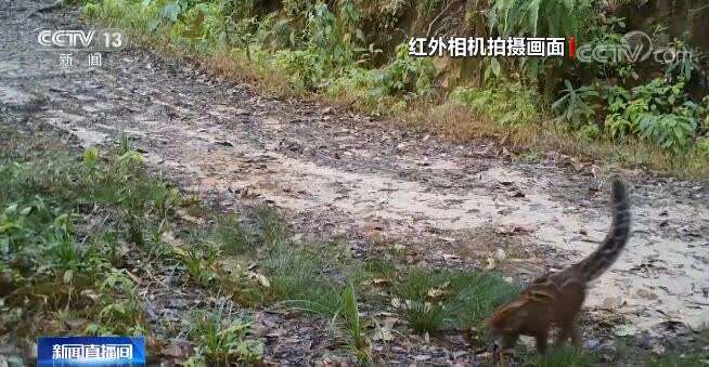 画面中的动物一不小心会认为是流浪在外的宠物猫。在墨脱传回的红外相机数据中,这种猫可谓花色多样,在不同的光线照射下,它们呈现在镜头中的颜色也变化多端。这种美丽的野猫便是金猫,在我国的保护等级刚由国家二级保护动物提升为国家一级保护动物。