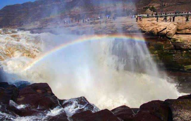 受气温回升影响,上游冰凌消融,壶口瀑布水量增大,湍急的河水倾泻而下,从空中俯瞰,主瀑布波涛汹涌,如万马奔腾,排山倒海,激起一团团白色水雾和烟云,形成“一里壶口十里雷,春水腾雾浪滔天”的壮美奇观。伴随着滔滔黄河的咆哮水声,《黄河大合唱》实景演出在壶口瀑布岸边激情上演,深度诠释中华民族精神。