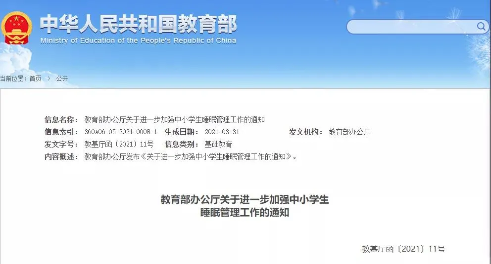 二、明确学生睡眠时间要求。根据不同年龄段学生身心发展特点,小学生每天睡眠时间应达到10小时,初中生应达到9小时,高中生应达到8小时。学校、家庭及有关方面应共同努力,确保中小学生充足睡眠时间。