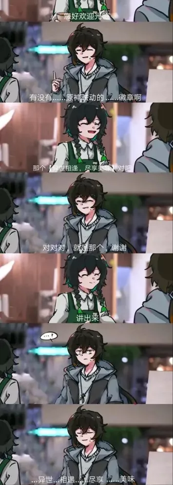 小C: 前段时间在KFC购买指定套餐并对店员说出口令“异世相逢,尽享美味”,可以得到一个原神x KFC联动徽章。我到店去喊……全程社死!