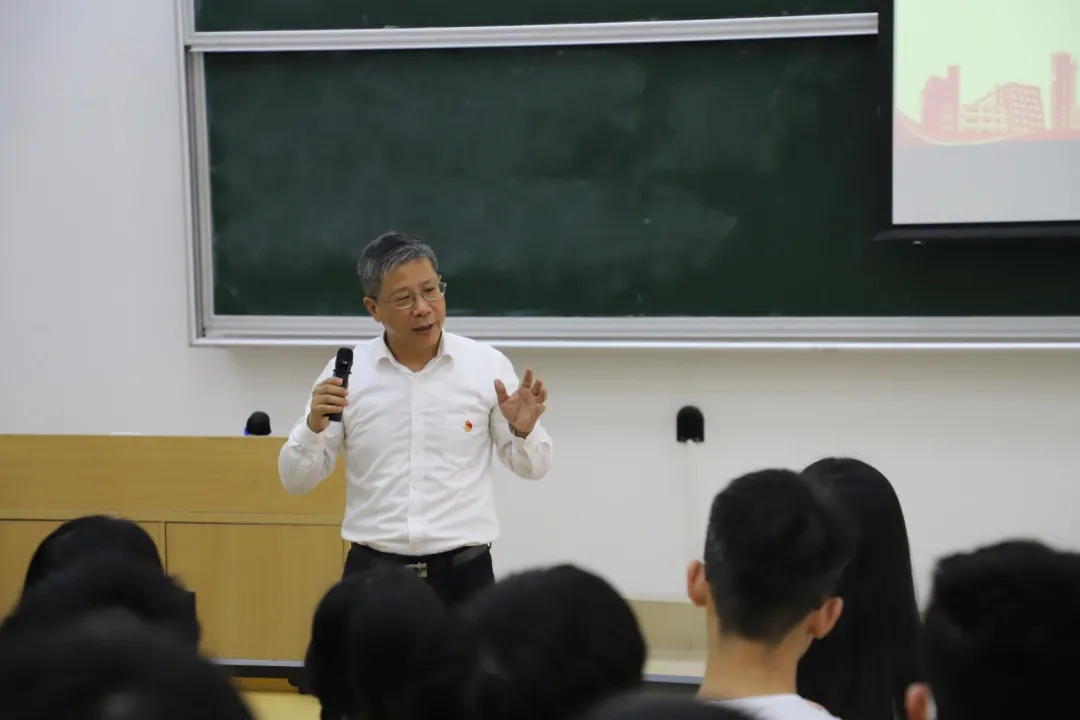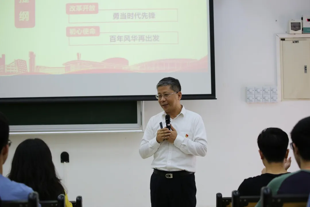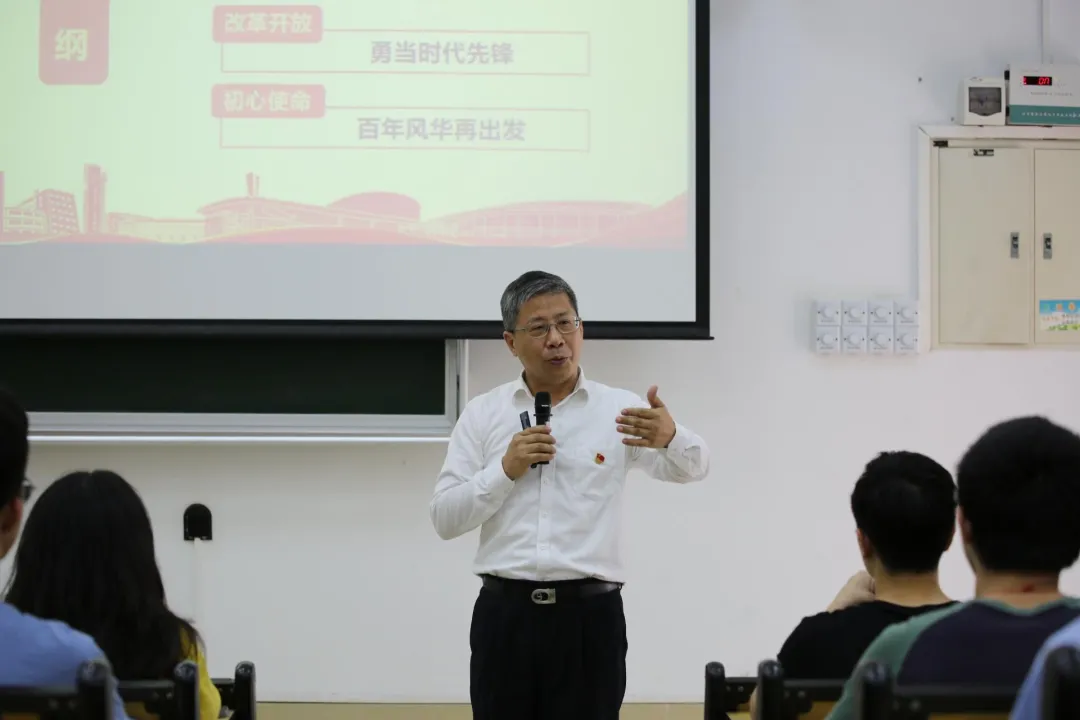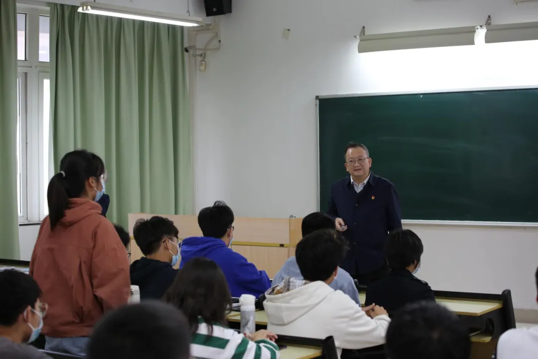 “深圳等经济特区40多年来的改革实践,推动中国特色社会主义制度更加成熟更加定型。”“上海浦东以先行改革闯新路,创造了中国改革开放的若干个第一......”围绕习近平总书记的重要论述,魏明海向同学们讲述深圳等经济特区改革开放实践积累的宝贵经验、上海浦东开发开放历程,充分展现改革开放进程在思想上、精神上、社会建设发展上带给中国社会的变化,鼓励同学们深入学习了解改革开放历程,强担当、敢作为,勇当时代先锋。