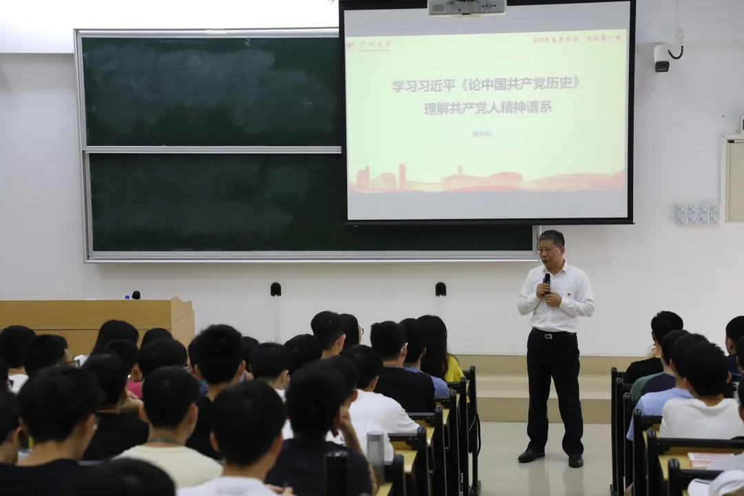 “精神底色,是一个人、一个政党的立身之本。”讲课伊始,魏明海将《论中国共产党历史》赠送给同学们传阅。结合习近平总书记的重要论述和井冈山时期、延安时期的革命斗争事例,魏明海阐释了“坚定执着追理想、实事求是闯新路、艰苦奋斗攻难关、依靠群众求胜利”的井冈山精神和“坚定正确的政治方向、解放思想实事求是、全心全意为人民服务、自力更生艰苦奋斗”的延安精神的精神内涵,强调了树立正确的世界观、人生观、价值观,传承红色基因的重要意义。